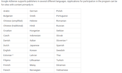 * هناك بعض اللغات التي يدعمها أدسنس، لذا تأكد من أن لغة المدونة الخاصة بك في قائمة هذه اللغات.